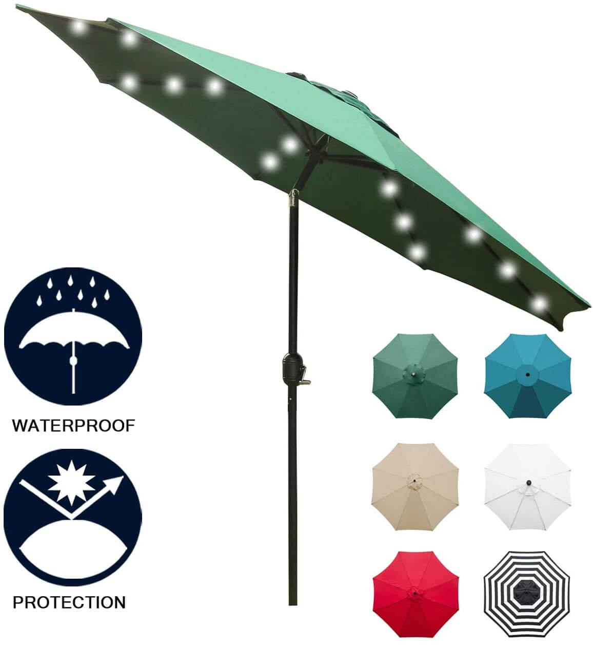 Sunnyglade 9' Solar 24 LED Lighted Patio Umbrella with 8 Ribs/Tilt Adjustment and Crank Lift System (Dark Green)