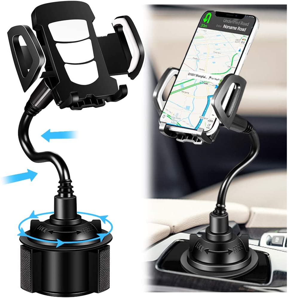 Car Cup Holder Phone Mount, Phone Holder for car 360 Degree Universal Adjustable Car Phone Mount Gooseneck Cup Holder Compatible for iPhone 11/XS Max/8/Plus/Galaxy/Huawei/All Smartphone